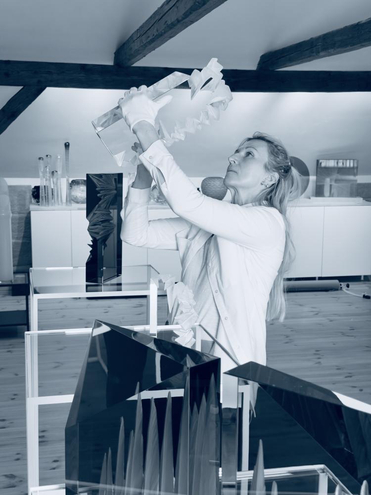 Die berufliche Laufbahn der Künstlerin basiert auf mehr als 25 Jahren Erfahrung und einer fundierten Ausbildung an der Prager Kunsthochschule VŠUP, wo ihr Gespür für lineare Dekoration und Gravurkunst geprägt wurde. Ihre Philosophie basiert auf einem perfekten Verständnis der natürlichen Eigenschaften von Glas – von präzisen Zeichnungen in massiven geschliffenen Blöcken bis hin zu organischen Formen, die durch das freie Fließen von heißem Glas entstehen. Ein wichtiger Meilenstein ihrer Karriere war die ikonische Realisierung für die Metro in Dubai, wo sie durch Glas- und Lichtfontänen ihre Fähigkeit unter Beweis stellte, technische Konstruktionen zugunsten eines reinen visuellen Erlebnisses und der Harmonie mit der Umgebung zu eliminieren.