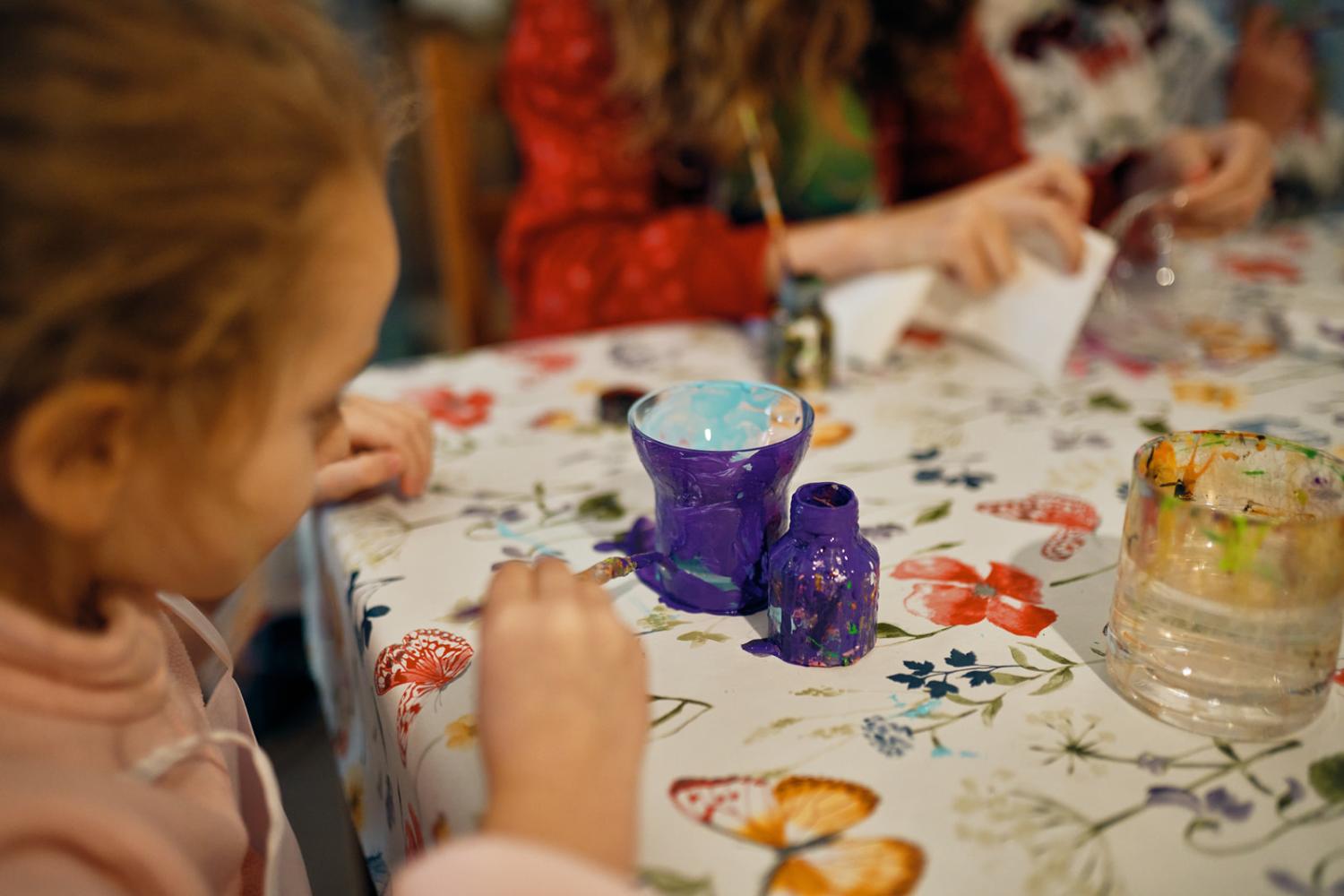 W warsztacie twórczym można wybrać szklankę i ozdobić ją farbami do zapiekania lub szlifierką według własnej fantazji. Cena za szklankę i materiały wynosi 200 CZK.